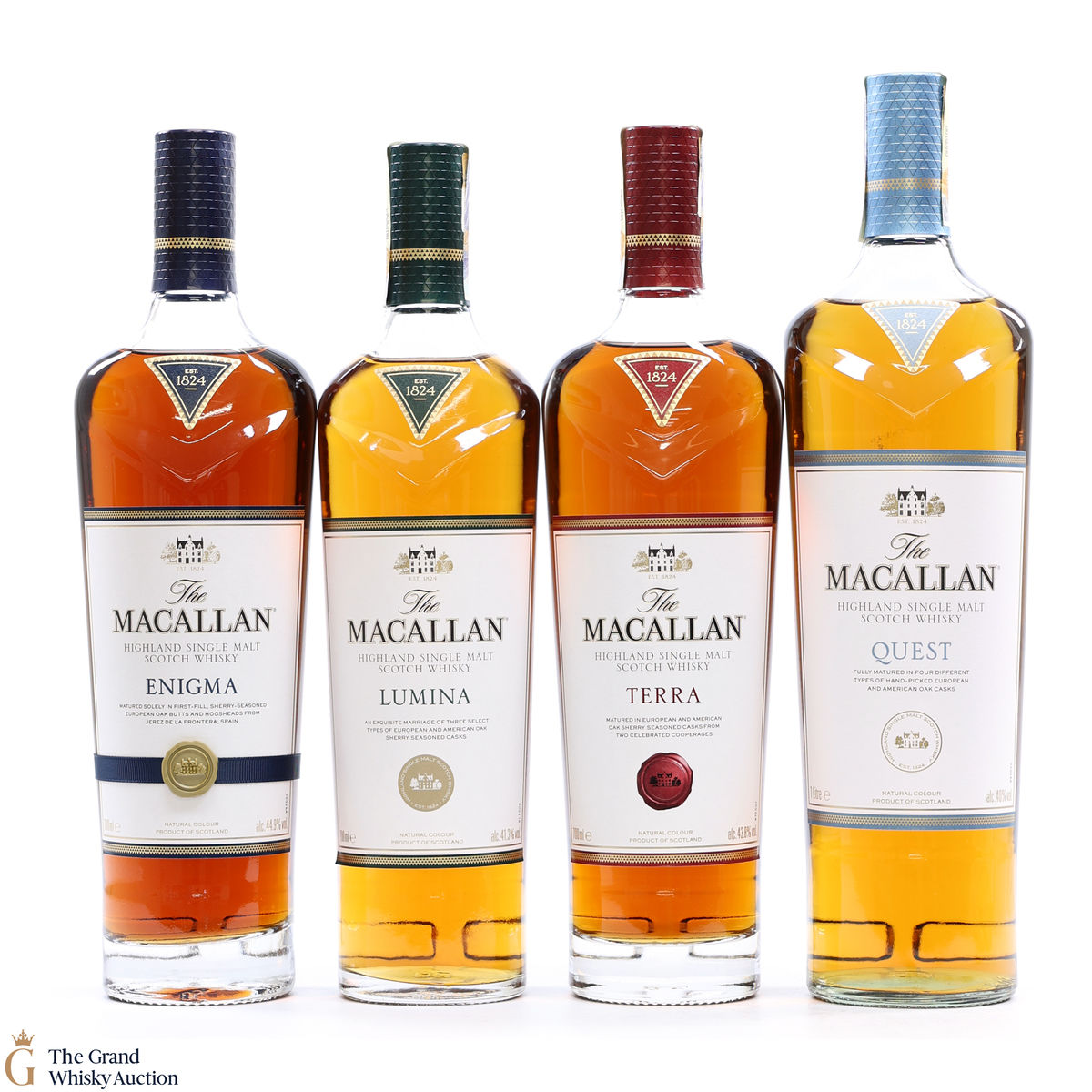 - Enigma: Enigma is at the top end of Macallan's Quest Collection drawn exclusively from European oak Sherry seasons casks from one cooperage in Jerez de la Frontera, Spain. 70cl, 44.9% ABV.