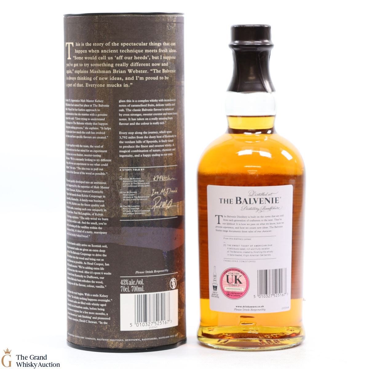 This is the introductory release from The Balvenie Stories range. Celebrating Kelsey McKechnie's idea to import virgin oak barrels from Kentucky and deeply toast them at the distillery's cooperage. They were then filled with Balvenie's ex-bourbon oak aged whisky for a finishing period.
