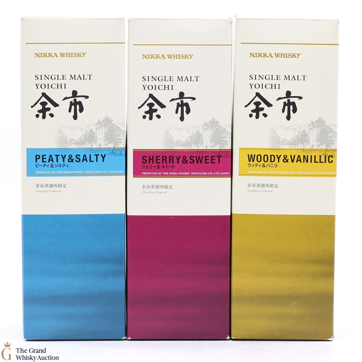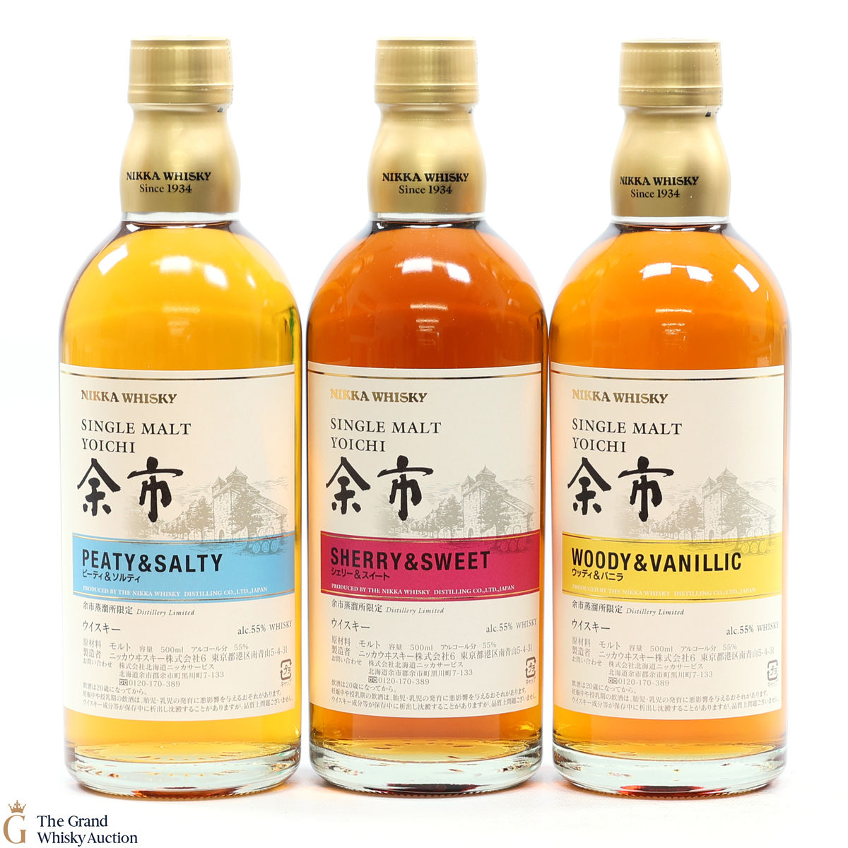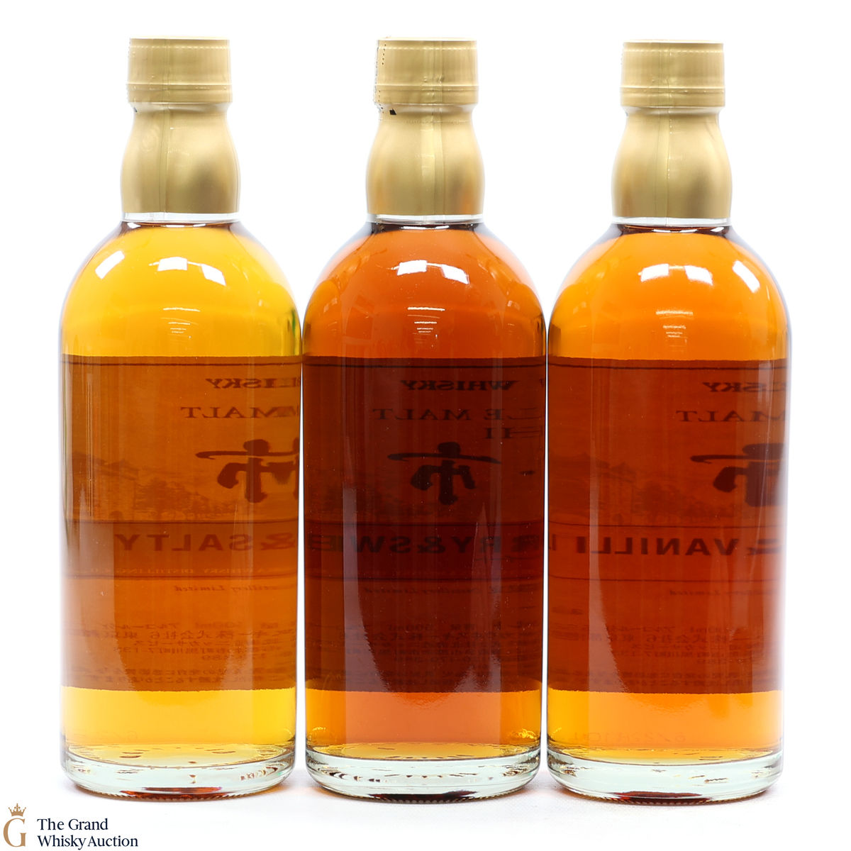 Three distillery exclusive 50cl releases from Nikka as part of their range explore the flavour profiles that make up the flagship products. This lot includes 3 x 50cl bottles; Peaty & Salty, Sherry & Sweet, Woody & Vanilla.