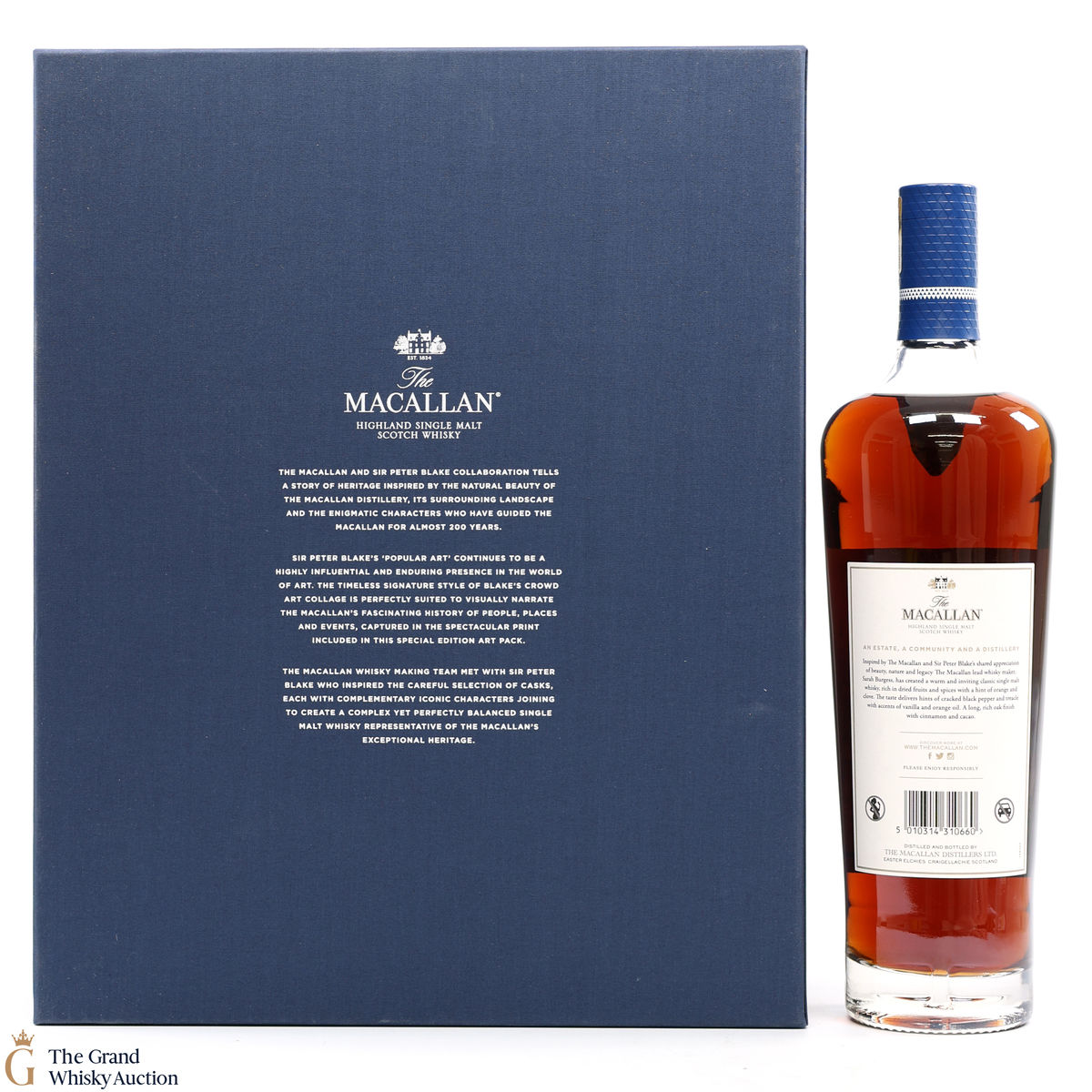 Part of The Anecdotes of Ages Collection, this is an extraordinary art and whisky collaboration with Sir Peter Blake. Being the third collaboration between the Macallan Distillery and Sir Peter Blake, this single malt was created to commemorate Sir Peter Blake's visit to The Macallan Estate. An Estate, a Community and a Distillery tells the story of some of the colourful characters from the distilleries past and present and features a label designed by Sir Peter Blake.