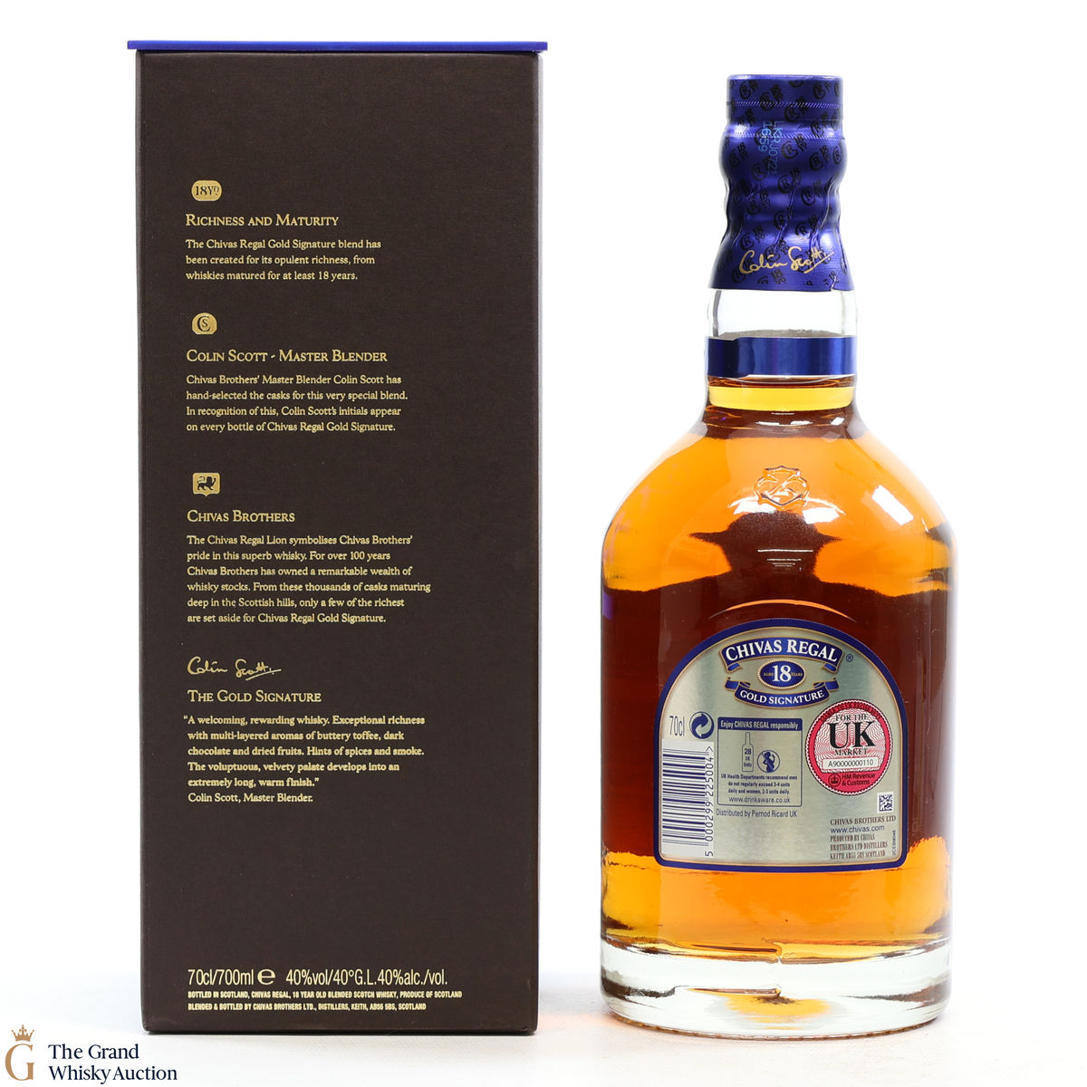 This is a 70cl bottling of Chivas Regal 18 Year Old Gold Signature. The packaging and bottling code indicate that it was bottled in 2010.