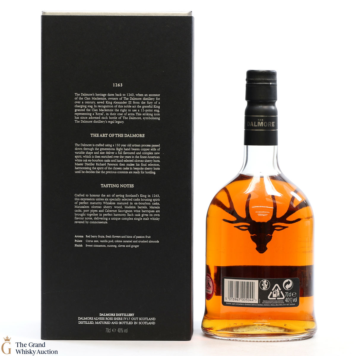 To make The Dalmore King Alexander III, Master Distiller Richard Paterson specially selected 6 casks of differently aged Dalmore malts matured in wine, Madeira, sherry, marsala, Kentucky bourbon and port casks. A remarkable feat of blending crafted to honour the act of saving Scotland's King in 1263. It is a rich, fruity Highland single malt.