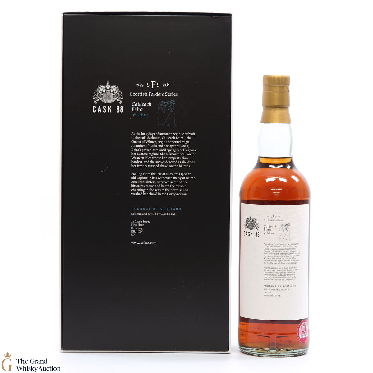 From the Scottish Folklore Series, this 3rd release 19-year-old was distilled at Laphroaig distillery on the 14th of February 2001 in a Chateau Leoville-Las Cases Bordeaux. Before being selected and bottled by Cask 88 at an ABV of 53.9%.
