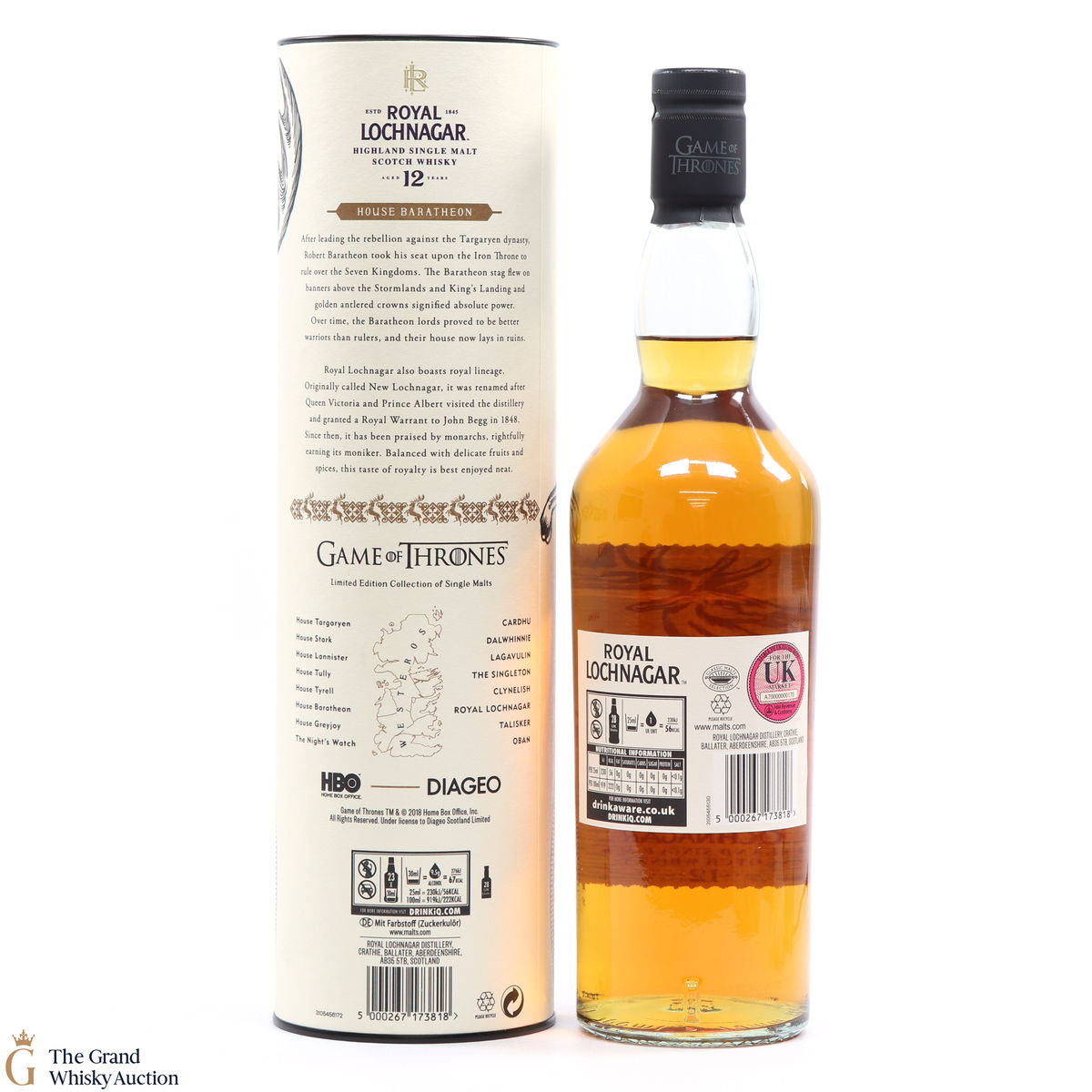 This is a limited-edition 12 year old single malt from Royal Lochnagar and it is part of Diagio's 2018 collaboration with HBO. Each single malt in the series relates to the land of houses of the Game of Thrones television series. The Royal Lochnagar bottle is decorated with a rampant black Stag, the sigil of House Baratheon that once flew on banners above the Stormlands and King’s Landing signifying absolute power.