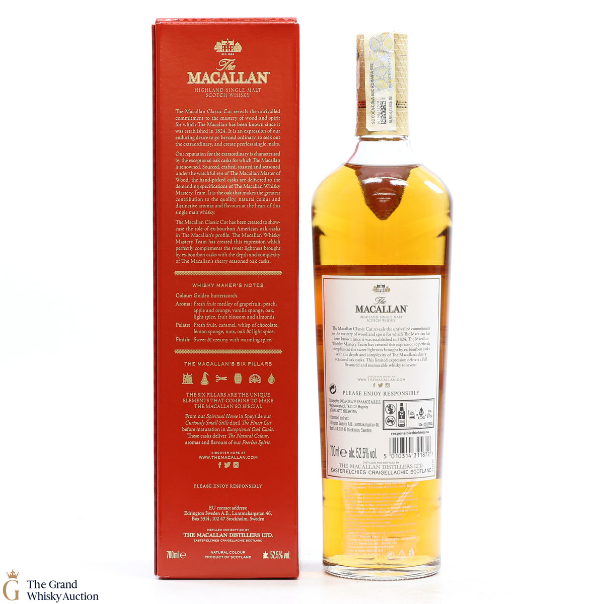 The Macallan Classic Cut - 2022 edition is the sixth release in the limited annual series. It was matured in both ex-bourbon and sherry seasoned oak casks before being bottled at 52.5% ABV.