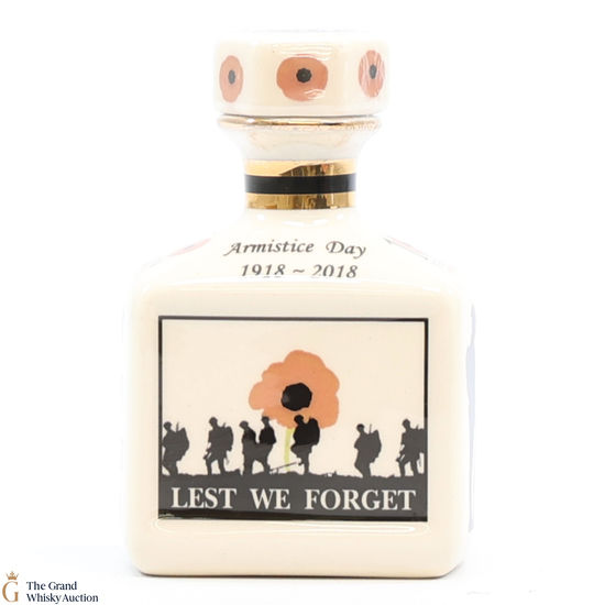 A mini decanter commemorating the 100th anniversary of the Armistice Day 1918-2018. Filled with a rare Macallan Malt Whisky, this is one of 100 bottles released.