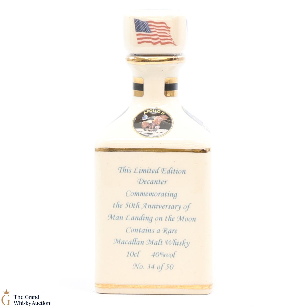 A mini decanter commemorating the 50th Anniversary of Man Landing on the Moon. Filled with a rare Macallan, this is one of 50 bottles released.