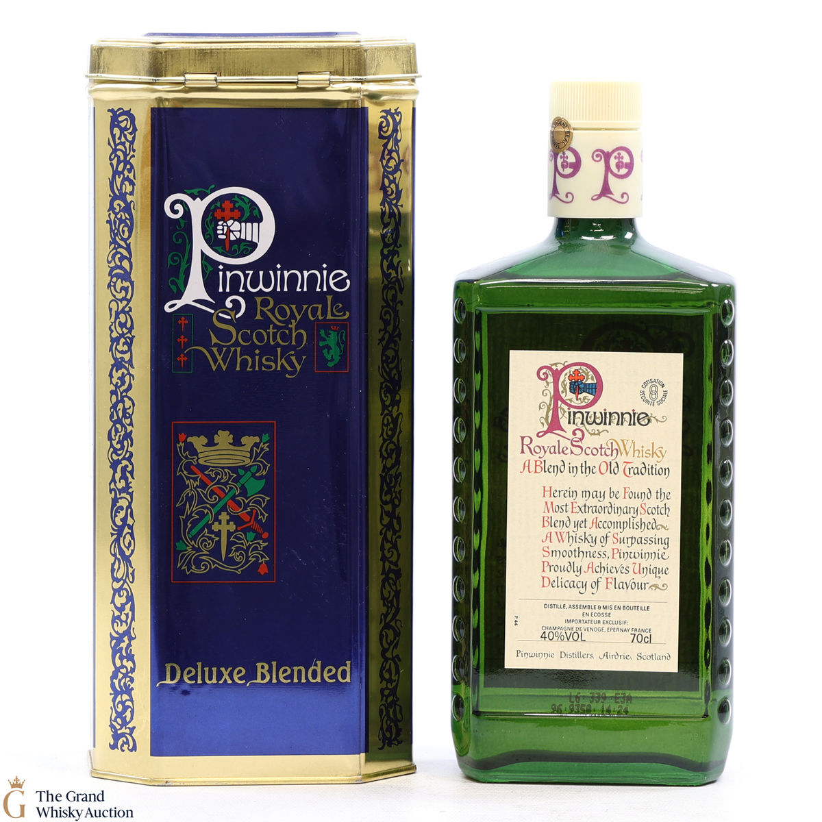 This is an eye-catching older style bottling of Pinwinnie Royale Deluxe Blended Whisky. It is very elegantly packaged with an iconic presentation tin. It is estimated that this botting is from the 1980s - unfortunately it is now discontinued.