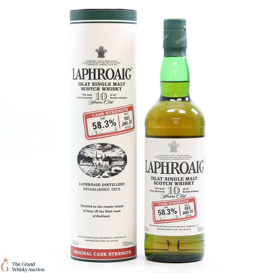 This bottling is from batch 002, original cask strength bottling of the medicinal 10 year old from Islay's bestselling distillery, Laphroaig. In making Laphroaig, malted barley is dried over a peat fire. The smoke from this peat, found only on Islay, gives Laphroaig its particularly rich flavour. This release was bottled at 58.3% in January 2010.
