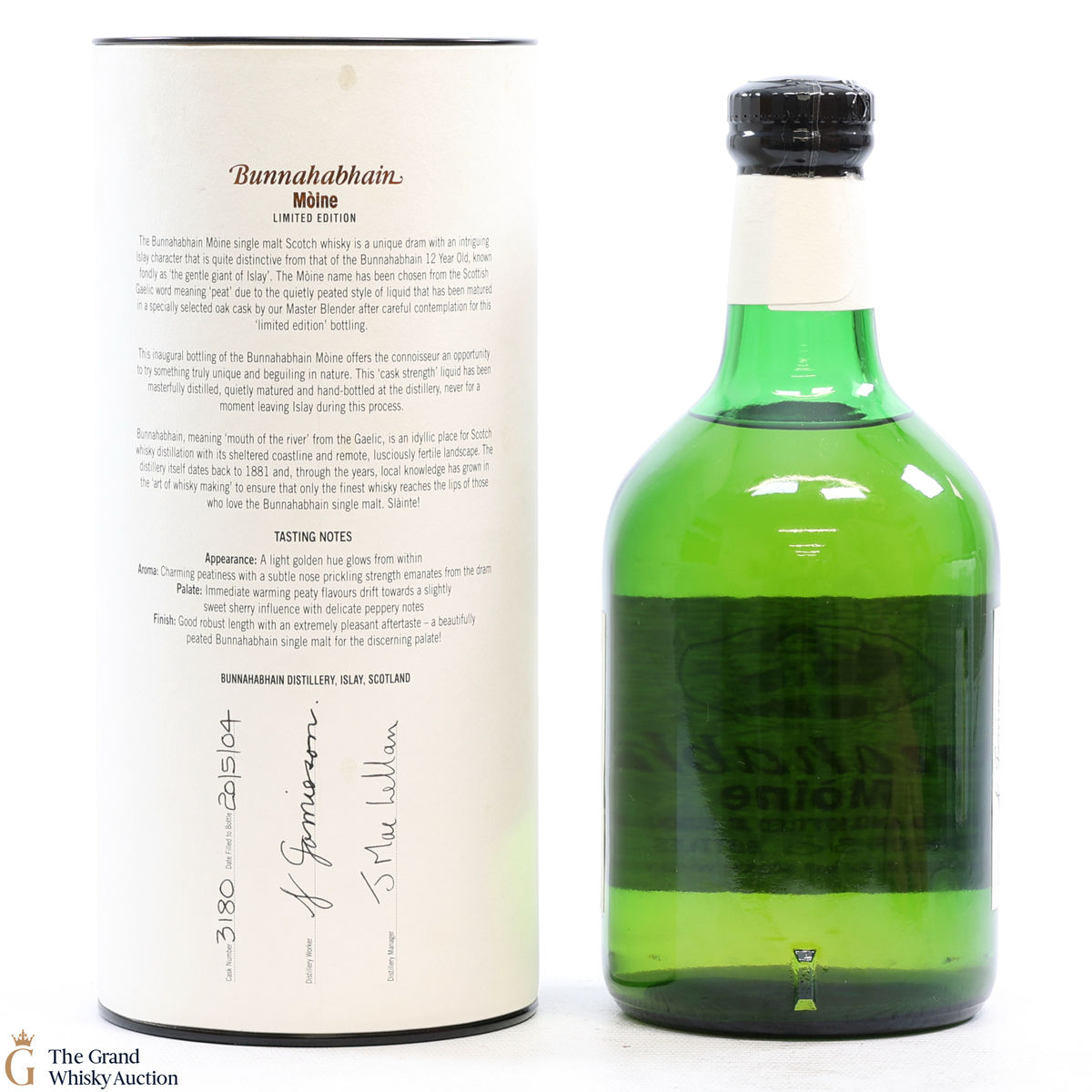 This was a very limited release by Bunnahabhain for Fèis Ìle 2004 - it is one of 310 bottles. This is a cask-strength, peated expression - 'Moine' is the Scottish Gaelic word for 'peat'.