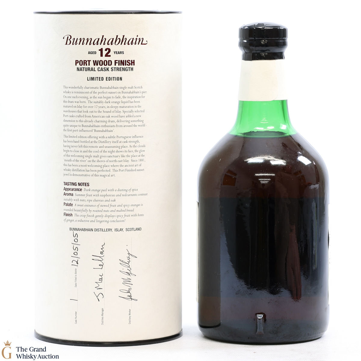 This is one of just 766 bottles of 12-Year-Old Port Wood Finish from cask #1 - distilled, matured and bottled by Bunnahabhain. It was released for Fèis Ìle 2005.