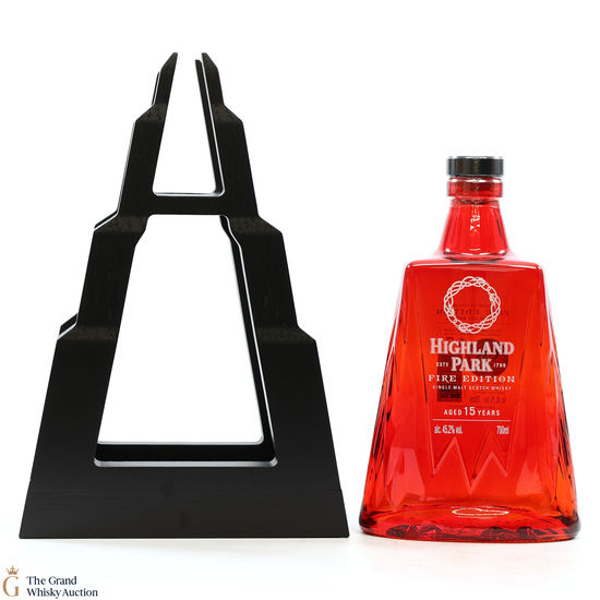 This stunning Highland Park 15 year old single malt follows the 'Ice' edition to complete this Highland Park two-part series. The 'Fire' edition celebrates Muspelheim, the glowing Norse fire realm of destruction. The malt was matured in refill Port casks and bottled at 45.2% abv. It's presented in a cradle shaped like a mountain.