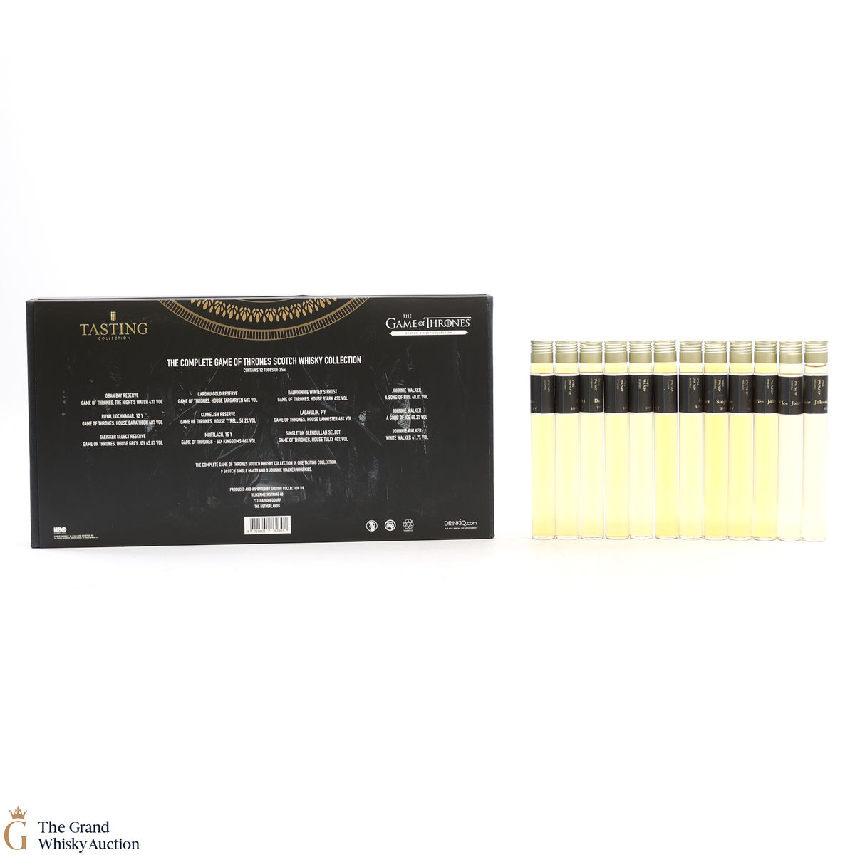 This unique tasting collection includes the entire Game of Thrones Whisky set in 2.5cl test tubes: