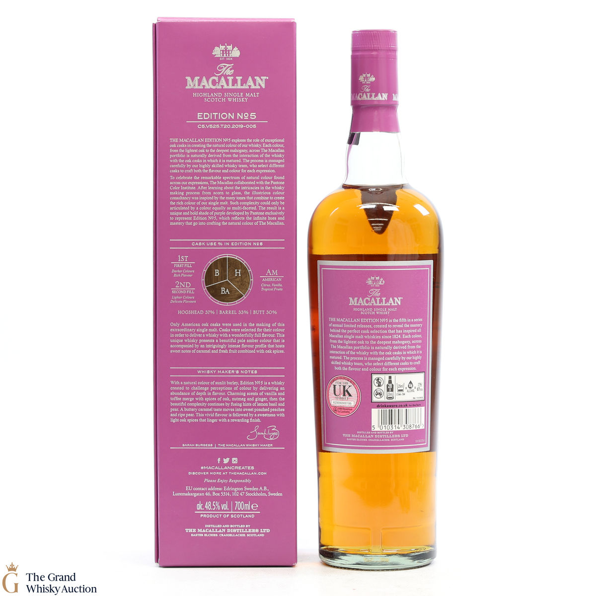 The fifth release in the Edition Series from The Macallan, The Macallan Edition No. 5 celebrates The Macallan’s extensive natural colour spectrum and the intricate whisky-making process, in partnership with masters at the Pantone Color Institute™ to create a unique shade of purple that features on the packaging.