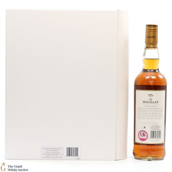 Folio 4: The fourth edition in the Archival Series from The Macallan. Folio 4 remembers the legendary advertising campaigns of the 1970s, 1980s and 1990s that brought The Macallan to the public’s attention outside of Scotland. It is presented in a beautiful book-shaped, tin case. It features an advertisement including a Strathspey composed by James Scott Skinner (1843-1927). The advert notes that Skinner was so moved by his favourite malt he created a unique piece of music featuring his signature lilting notes with the simple catchphrase: “The Macallan. The Malt.” Bottled at 43% ABV, 70cl.