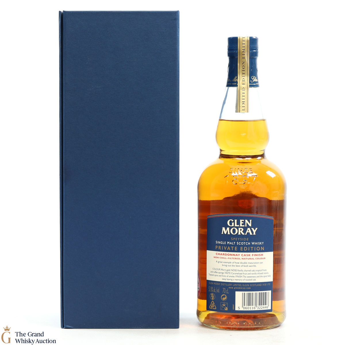 The whisky was finished in a Chardonnay cask and bottled at 52.8%