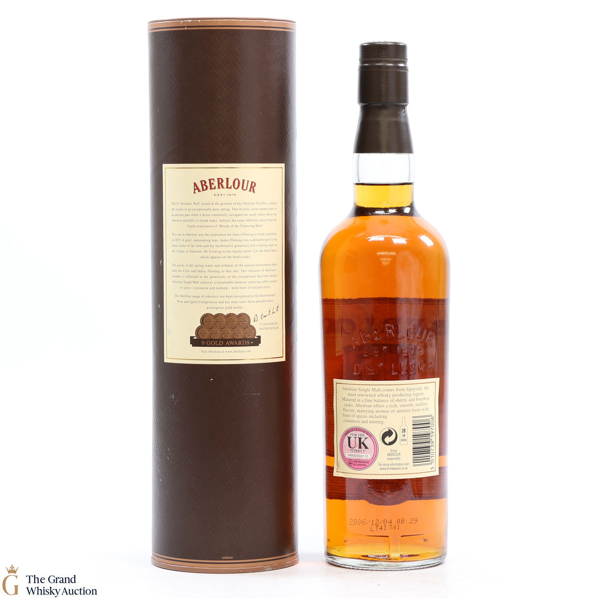 Due to the various ages of bottles and their seals, the condition of liquid is at the buyer's discretion and no claim can be lodged against failure/leakage in transit. Loss and breakage cover is available at 3% of the hammer price as standard. If the lot is not insured, no claim can be lodged against the courier or The Grand Whisky Auction for breakage or loss in transit.