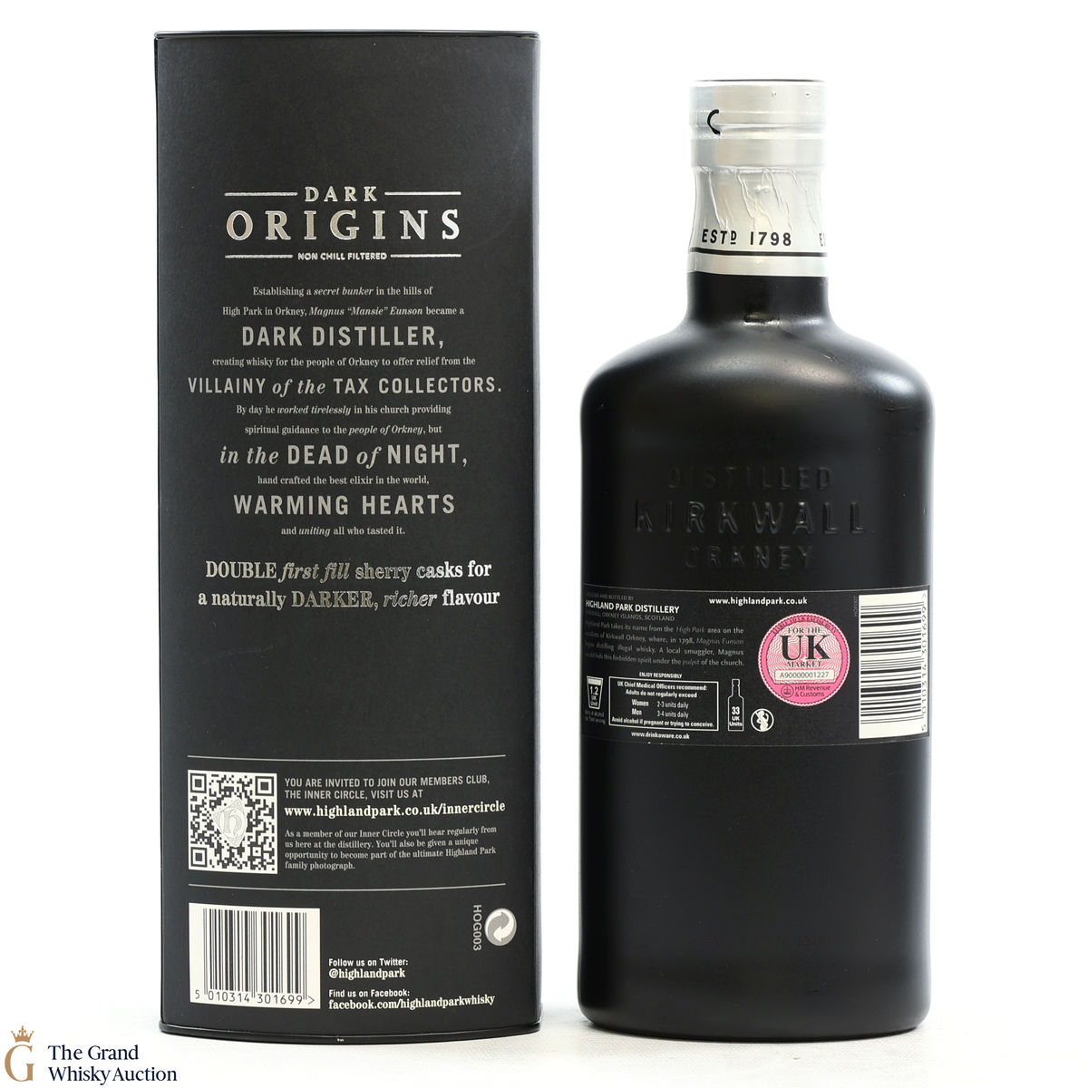 Highland Park Dark Origins is core bottling that celebrates the early days of Magnus Eunson's illicit distilling on Orkney, back before the distillery was even founded in 1798. Magnus worked as a butcher and church official by day, but by night he was a legendary whisky smuggler and distiller outwitting the exciseman.