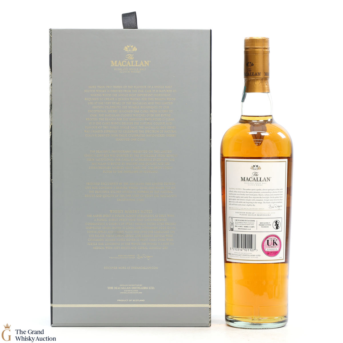 A stylish Macallan gift pack. It contains a 70cl bottle of the Amber expression from the Macallan 1824 Series, a limited-edition branded Macallan whisky tumbler & Water Jug.