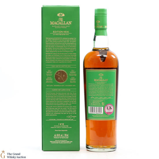 The fourth release in the Edition Series from The Macallan, this Speyside single malt is a celebration of the distillery's whisky making heritage, combining a unique selection of oak cask styles. Edition No.4 reflects the craftsmanship and pioneering design of the new Macallan distillery.