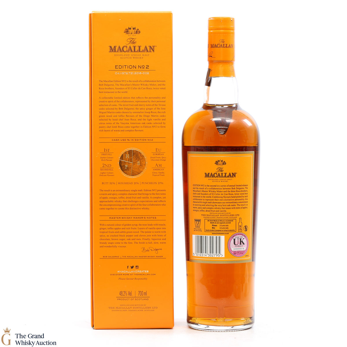 This is the second release from the Macallan Edition series. Edition No.2 is a collaboration between Macallan's master blender Bob Delgarno and legendary Spanish chefs Joan, Josep and Jordi Roca. The Rocas are the three brothers behind El Celler de Can Roca (named Best Restaurant in the World twice by Restaurant magazine). This single malt was drawn from a combination of sherry puncheons, butts and refill hogsheads.