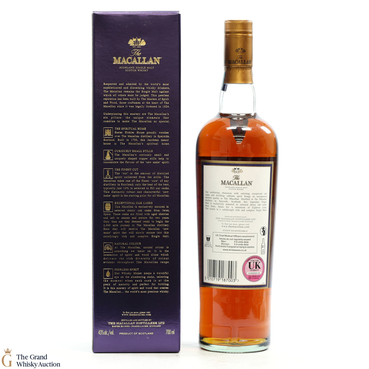 Due to the various ages of bottles and their seals, the condition of liquid is at the buyer's discretion and no claim can be lodged against failure/leakage in transit. Loss and breakage cover is available at 3% of the hammer price as standard. If the lot is not insured, no claim can be lodged against the courier or The Grand Whisky Auction for breakage or loss in transit.