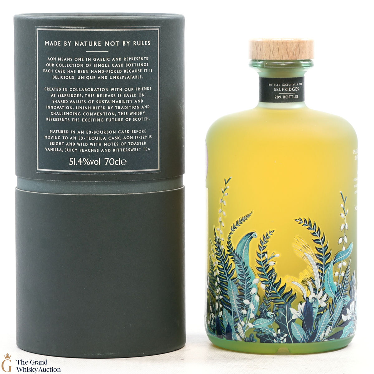 This is the first of their single cask releases, exclusively for Selfridges. 'Aon' means one in Gaelic and is the name of the Nc'Nean single cask releases. Created in collaboration with Selfridges, based on their shared values of sustainability and innovation. Matured in an ex-bourbon cask before moving into an ex-tequila cask. Bottled at 51.4%.