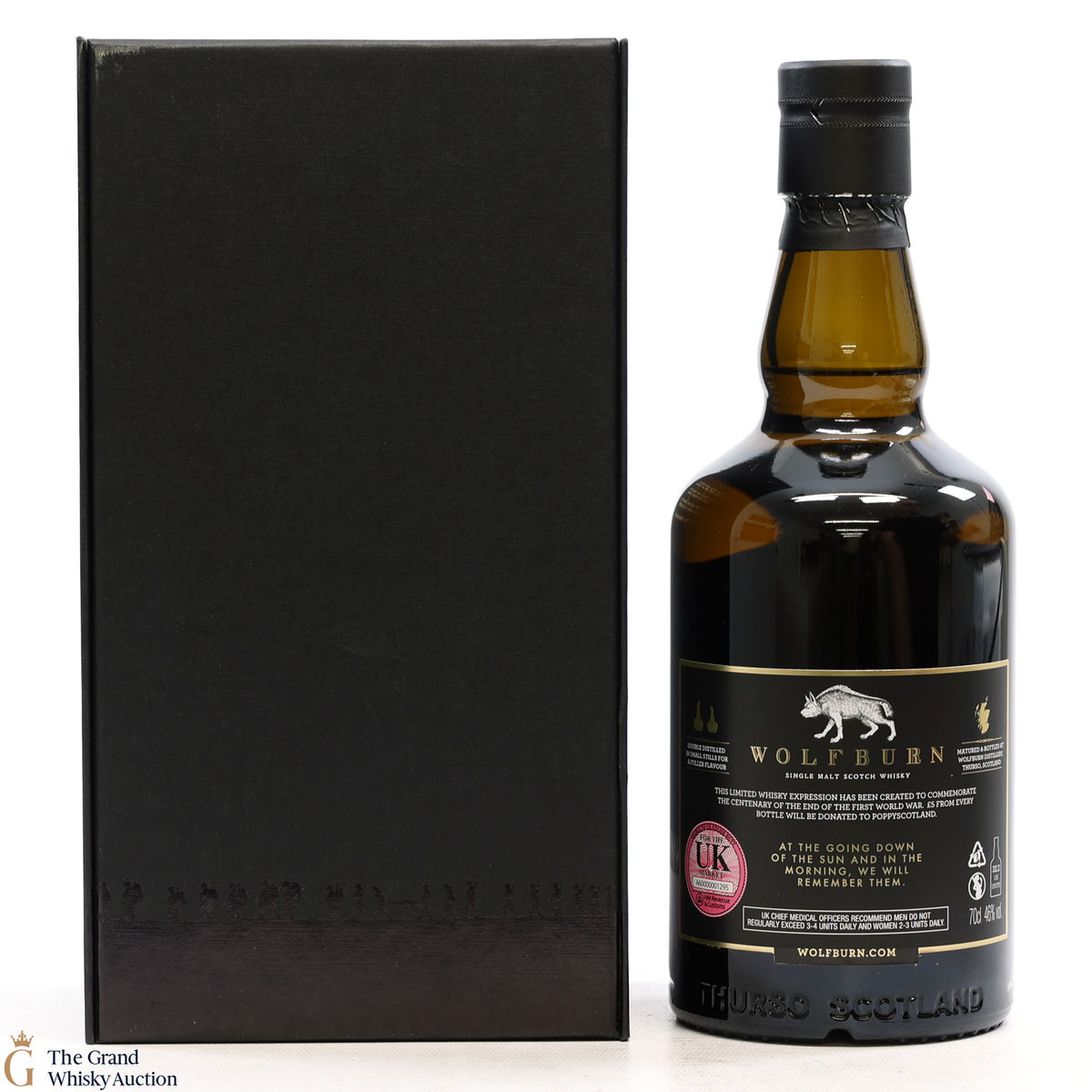 A limited edition from Wolfburn Distillery to commemorate the 100th anniversary of the end of The First World War. A total of 1918 bottles were produced and sold exclusively from the distillery and through the Carnegie Whisky Cellars in Dornoch. This project is important to both companies and was proposed to Wolfburn Distillery due to the owners of Wolfburn being former British Servicemen and the importance of the Poppy Appeal to all service personnel and their families.