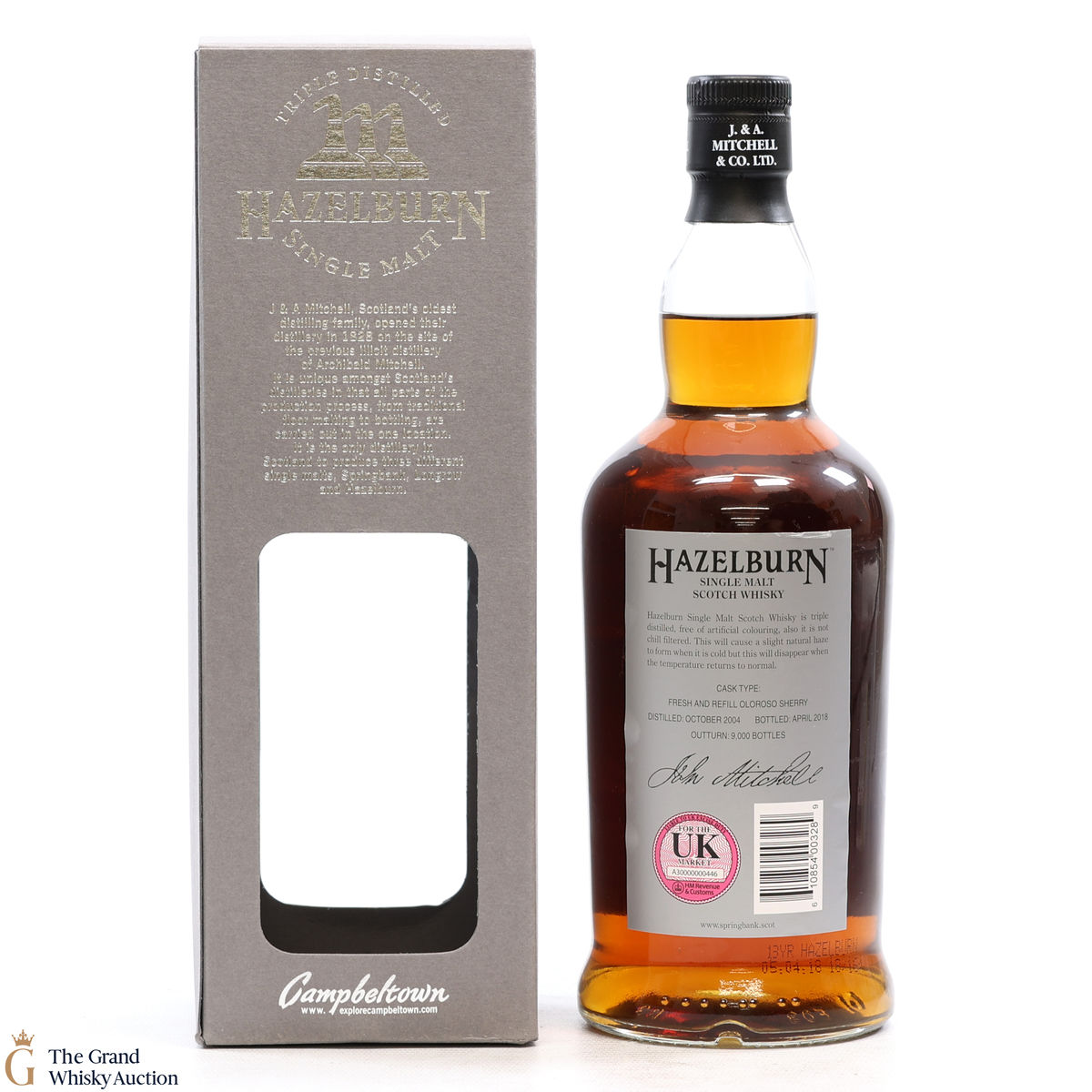 Tthis is 13 Year old bottling Hazelburn was distilled in October 2004. Hazelburn is a triple distilled, completely unpeated single malt, produced at the Springbank Distillery, this bottling has been matured in oloroso casks. This is 1 of 9000 bottles released in April 2018.