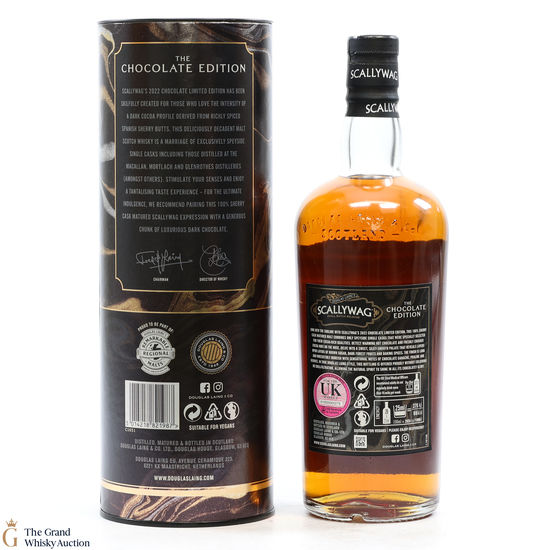 In celebration of World Chocolate Day 2022 Douglas Laing releases this 100% Sherry Cask Matured Limited Edition Speyside Malt Scotch Whisky. This special release marks the 5th annual chocolate bottling from the Scallywag brand.