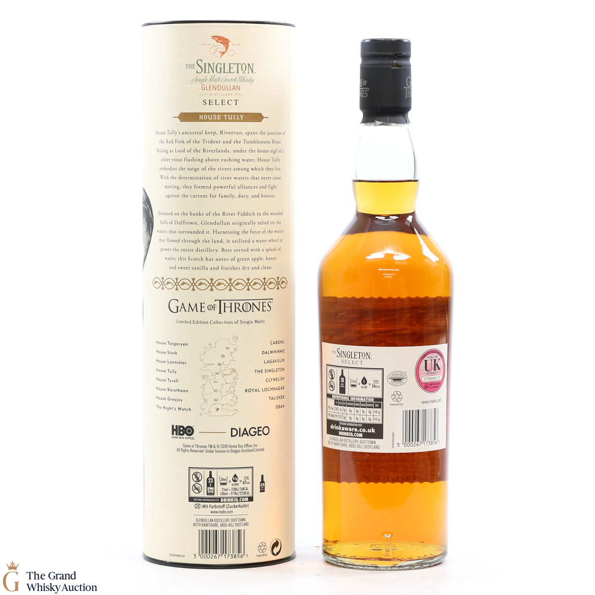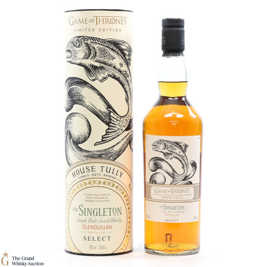 The Singleton Glendullan Reserve hails from Dufftown distillery. Glendullan is located on the banks of the River Fiddich, so it has been cleverly paired with House Tully at Riverrun, which is in the region known as The Riverlands. This single malt Scotch whisky is decorated with a jumping trout - the sigil of House Tully.