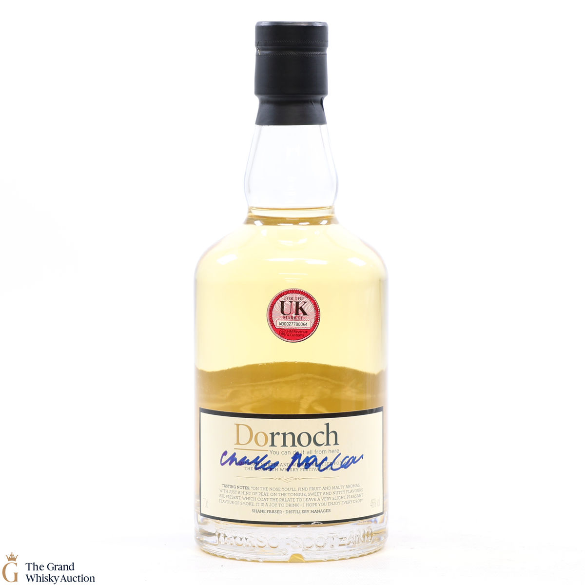 Due to the various ages of bottles and their seals, the condition of liquid is at the buyer's discretion and no claim can be lodged against failure/leakage in transit. Loss and breakage cover is available at 3% of the hammer price as standard. If the lot is not insured, no claim can be lodged against the courier or The Grand Whisky Auction for breakage or loss in transit.