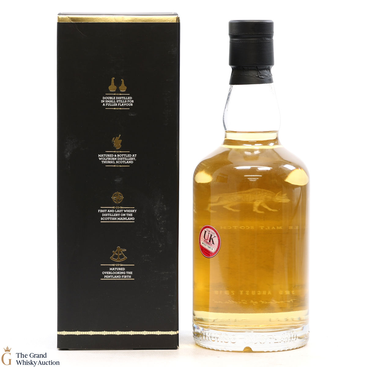 Due to the various ages of bottles and their seals, the condition of liquid is at the buyer's discretion and no claim can be lodged against failure/leakage in transit. Loss and breakage cover is available at 3% of the hammer price as standard. If the lot is not insured, no claim can be lodged against the courier or The Grand Whisky Auction for breakage or loss in transit.