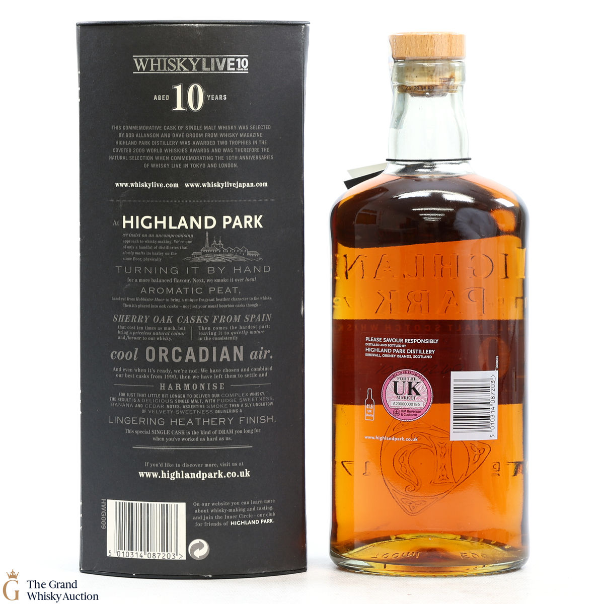 This is a limited edition 10-year-old Highland Park bottled to commemorate 10 years of Whisky Live. It was distilled in 1999, matured in sherry Oak casks, bottled in 2009 at the cask strength of 59.3%. This is a limited edition of only 600 bottles.