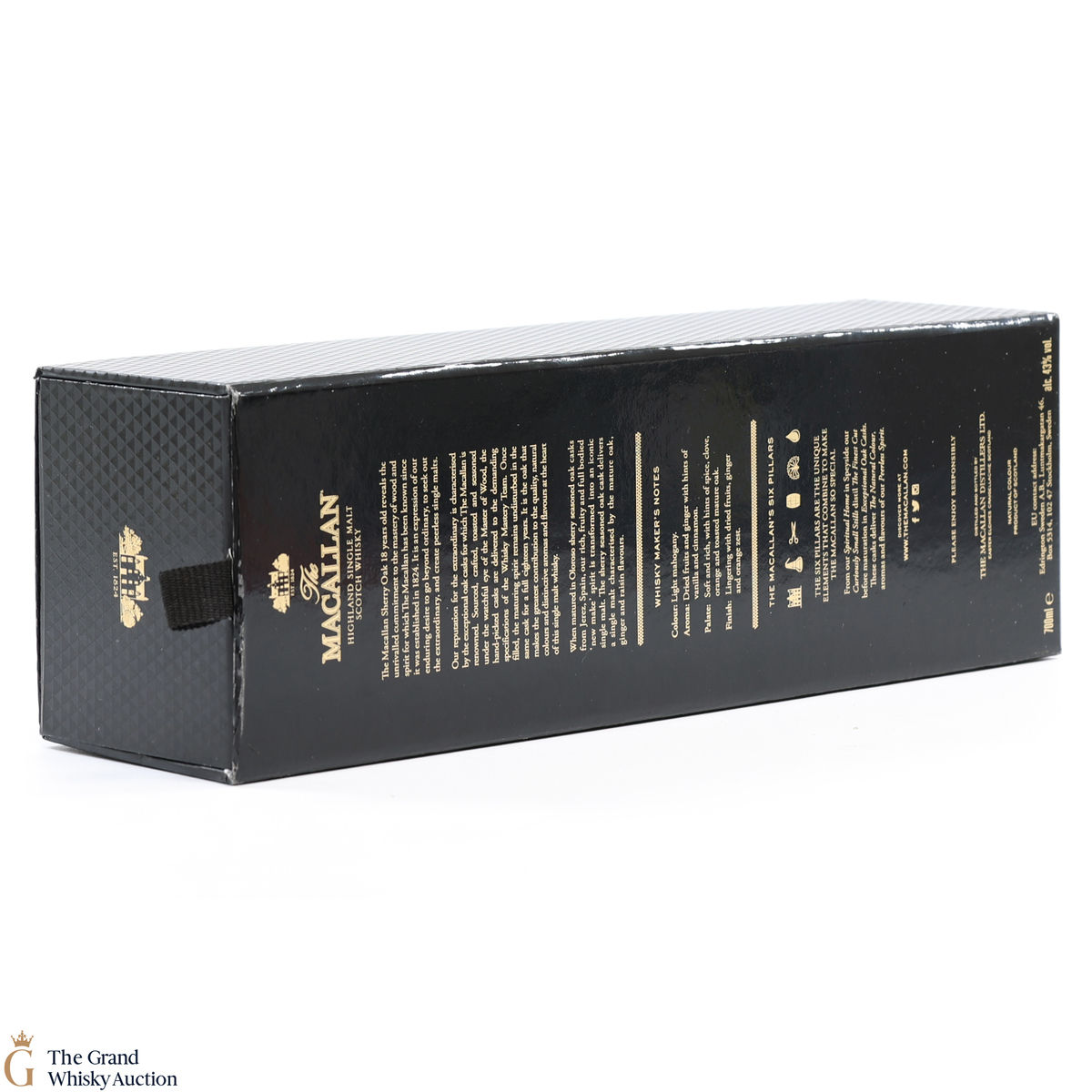 This annual release of The Macallan's popular 18 Year Old Sherry Oak is matured exclusively in sherry seasoned casks, built from both Spanish and American oak, providing a beautifully dark flavour with rich aromas.