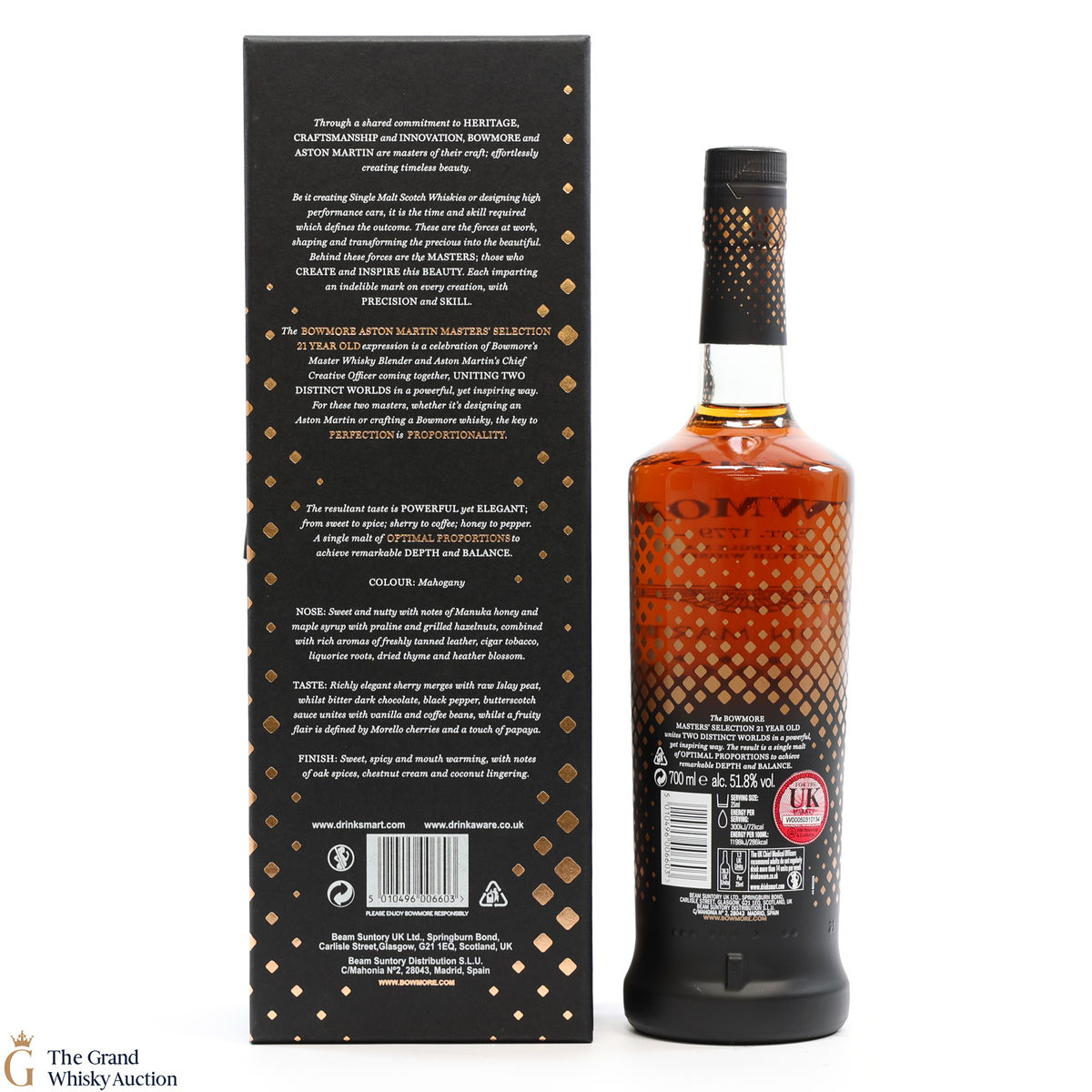 This 21-Year-Old Bowmore is a limited-edition single malt created in collaboration between Ron Welsh, Bowmore Master Blender and Marek Reichman, Aston Martin Chief Creative Officer. Matured in a combination of oloroso and Pedro Ximenez sherry casks. The result is a single malt that thrills all the senses for optimal enjoyment.