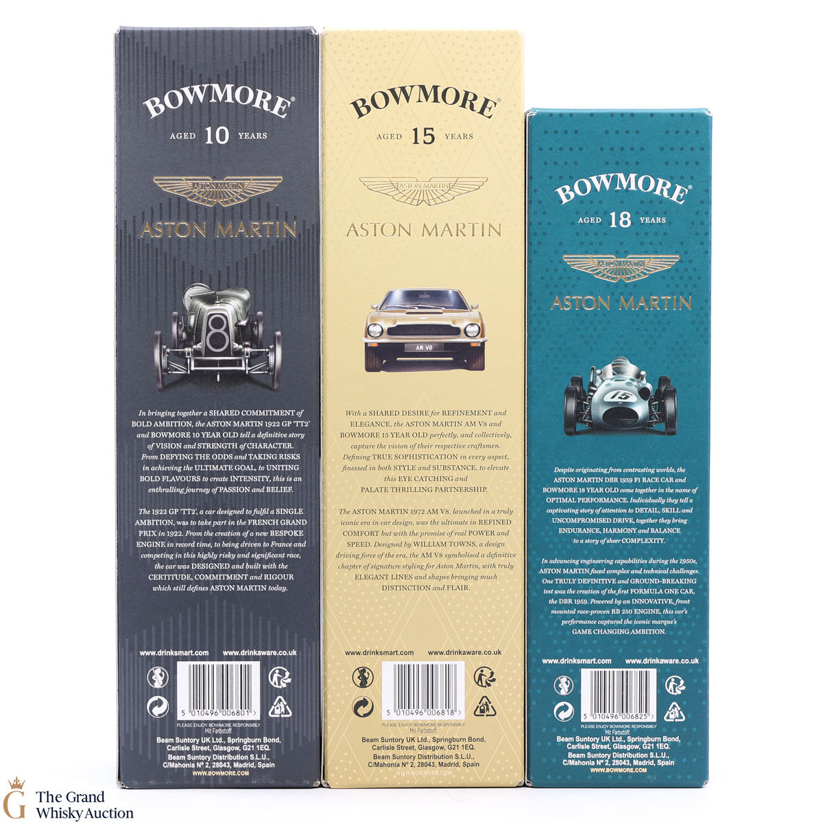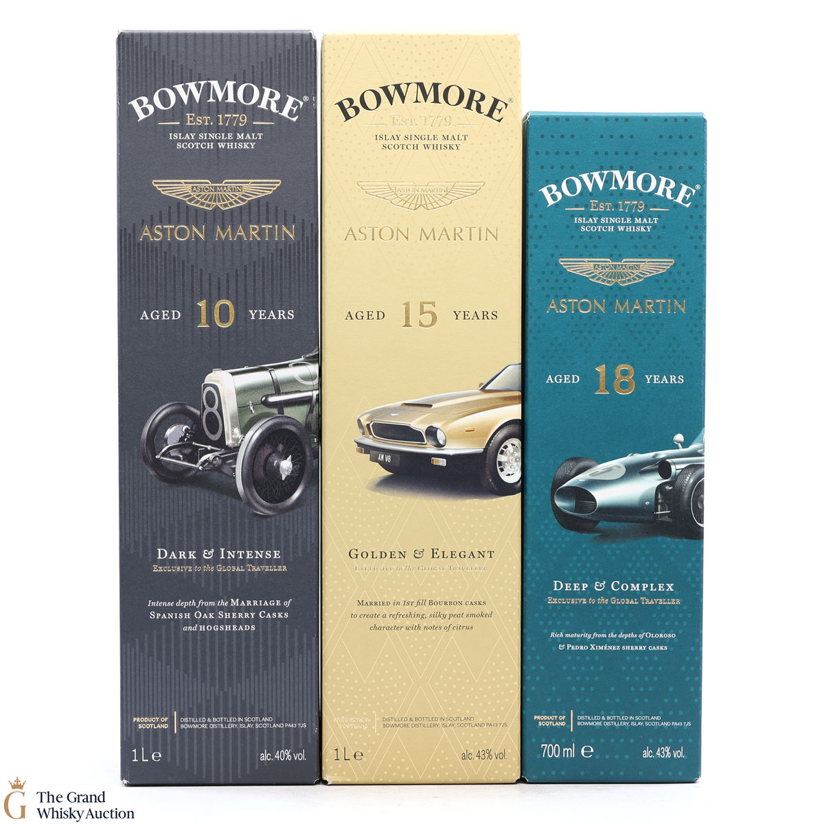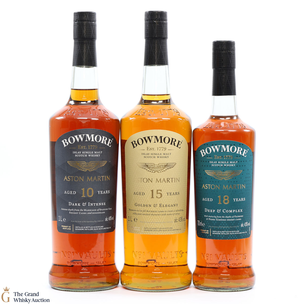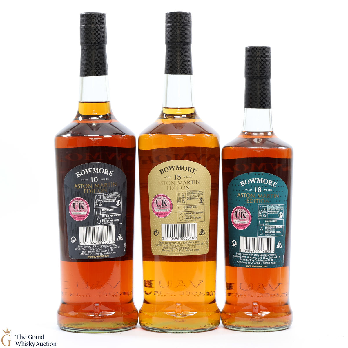 This lot includes 3 x Travel retail exclusive bottles; Edition 4, 5 & 6 from the limited BOWMORE X ASTON MARTIN collection; 2 x 1L bottles and 1 x 70cl.