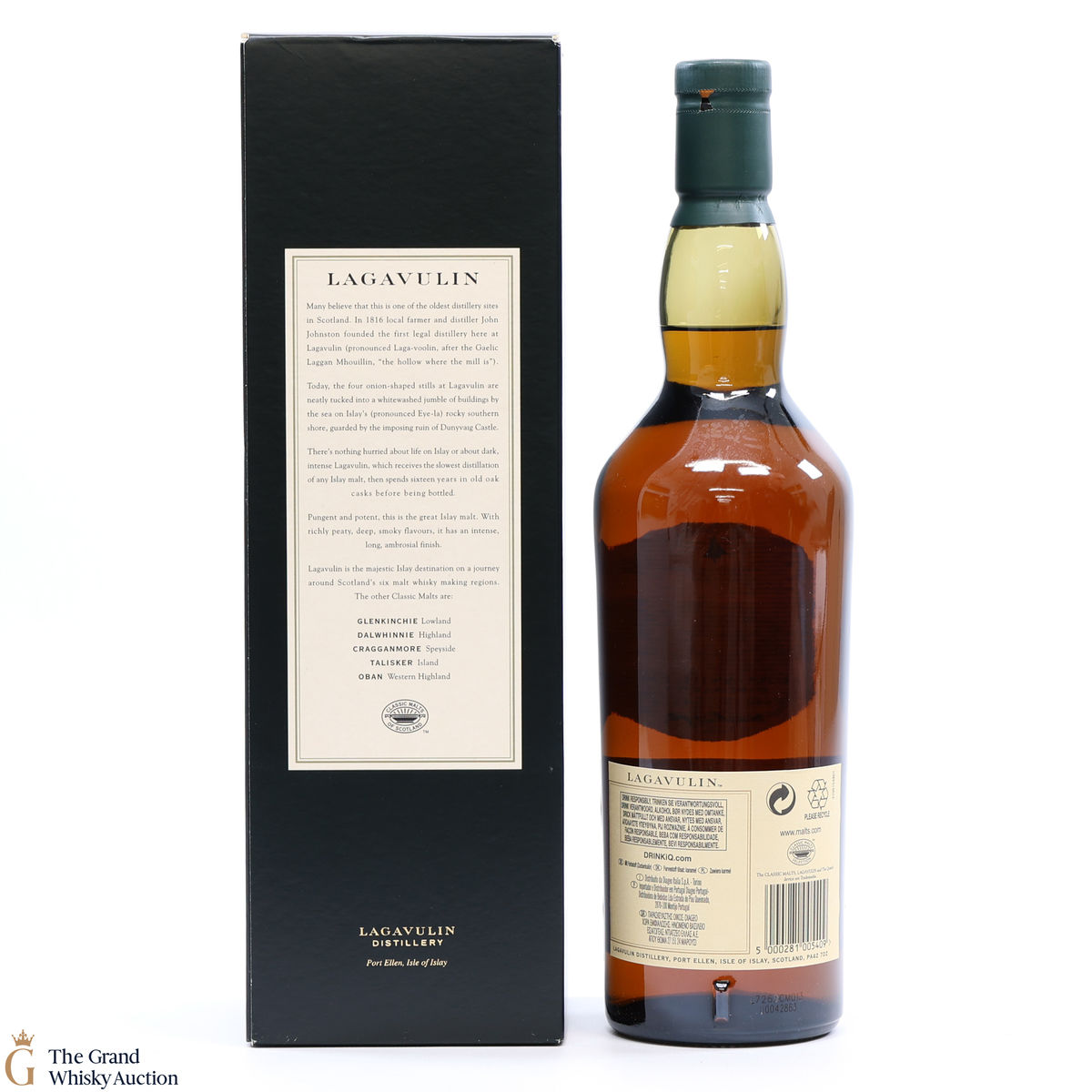 This is a popular and much sought-after single malt with the massive peat-smoke that's typical of southern Islay - but also offering richness and a dryness that turns it into a truly interesting tipple. The 16 year old, aged in oak casks has truly become a benchmark Islay dram from the Lagavulin distillery.