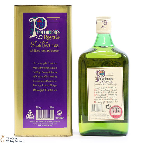 This is an eye-catching older style bottling of Pinwinnie Royale Deluxe Blended Whisky. It is very elegantly packaged with an iconic presentation tin. It is estimated that this botting is from the 1980s - unfortunately it is now discontinued.