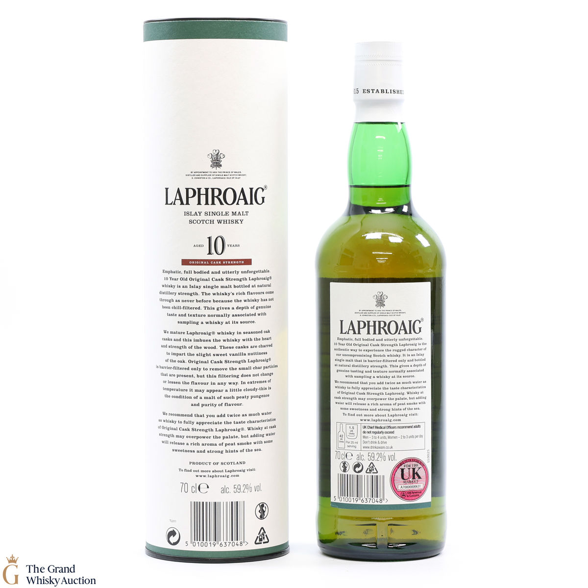 This original cask strength bottling of the medicinal 10 year old from Islay's bestselling distillery, Laphroaig. In making Laphroaig, malted barley is dried over a peat fire. The smoke from this peat, found only on Islay, gives Laphroaig its particularly rich flavour.