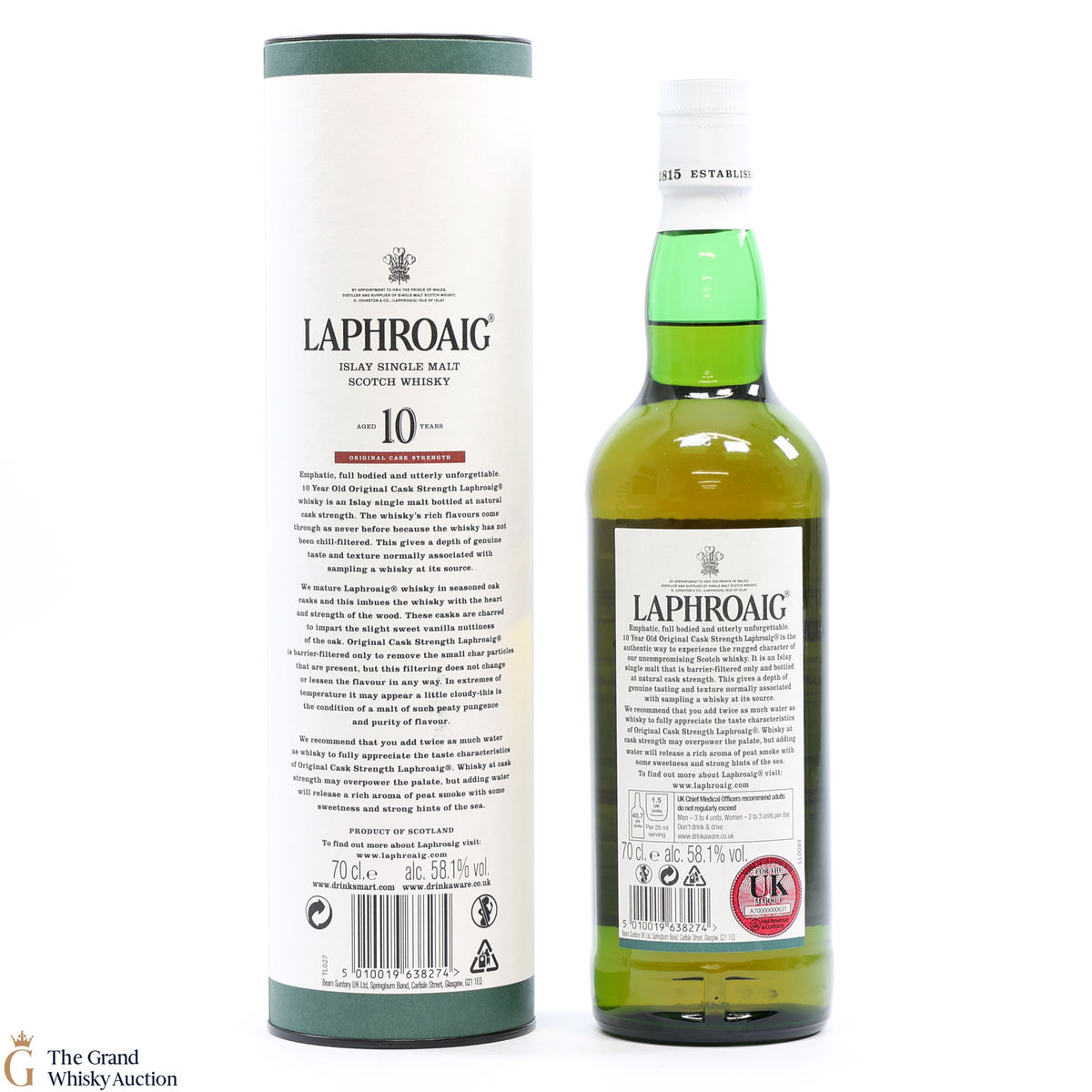 This bottling is from batch 009, original cask strength bottling of the medicinal 10-year-old from Islay's bestselling distillery, Laphroaig. In making Laphroaig, malted barley is dried over a peat fire. The smoke from this peat, found only on Islay, gives Laphroaig its particularly rich flavour. This release was bottled at 58.1% in February 2017.