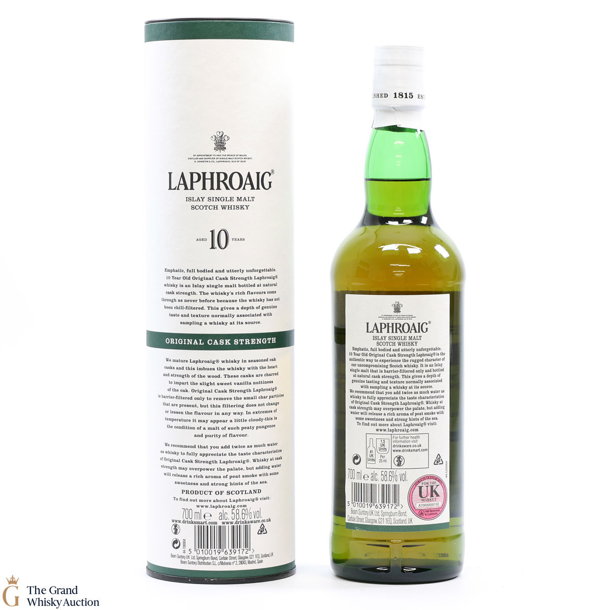 This original cask strength bottling of the medicinal 10 year old from Islay's bestselling distillery, Laphroaig. In making Laphroaig, malted barley is dried over a peat fire. The smoke from this peat, found only on Islay, gives Laphroaig its particularly rich flavour.