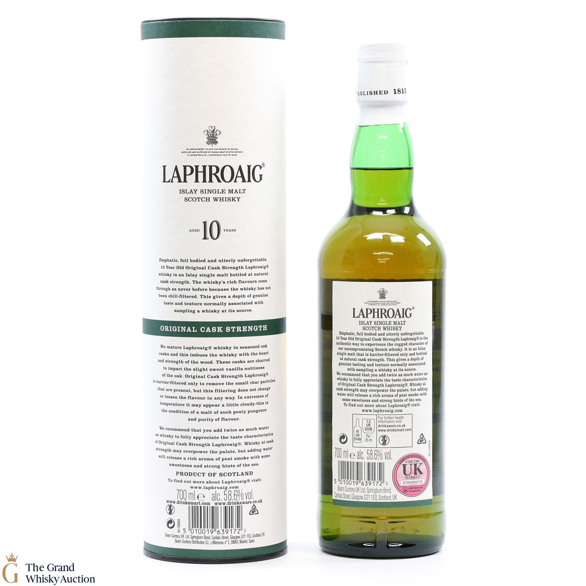 This original cask strength bottling of the medicinal 10 year old from Islay's bestselling distillery, Laphroaig. In making Laphroaig, malted barley is dried over a peat fire. The smoke from this peat, found only on Islay, gives Laphroaig its particularly rich flavour.