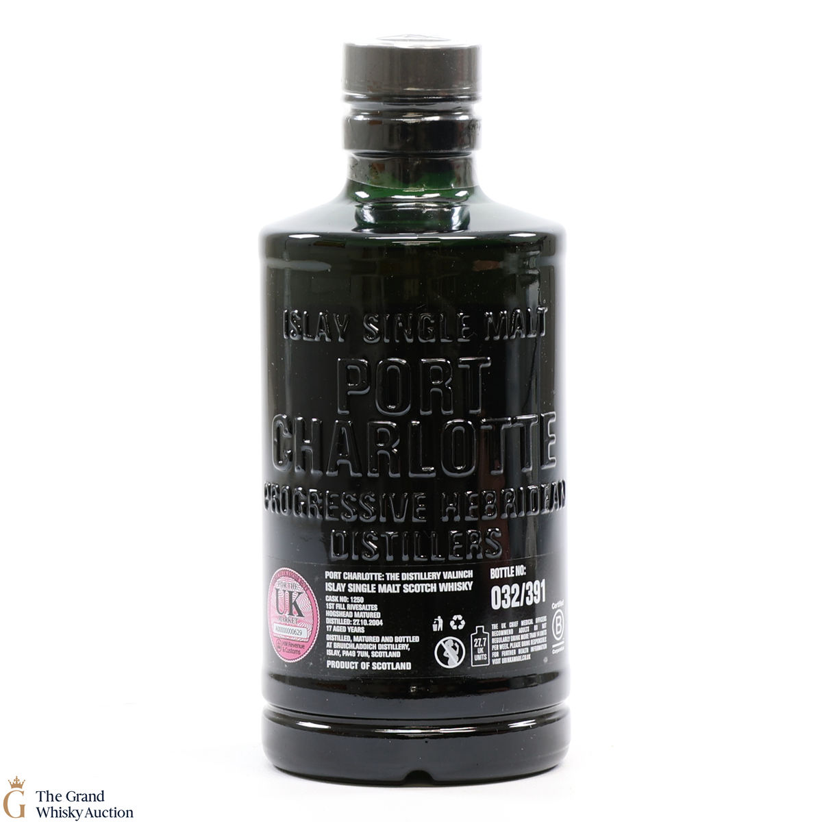 This Port Charlotte Valinch single cask is a single cask distillery-only release. Distilled in Islay in 2004, matured in Rivesaltes Hogshead #1250 for 17 years. This is one of 391 bottles