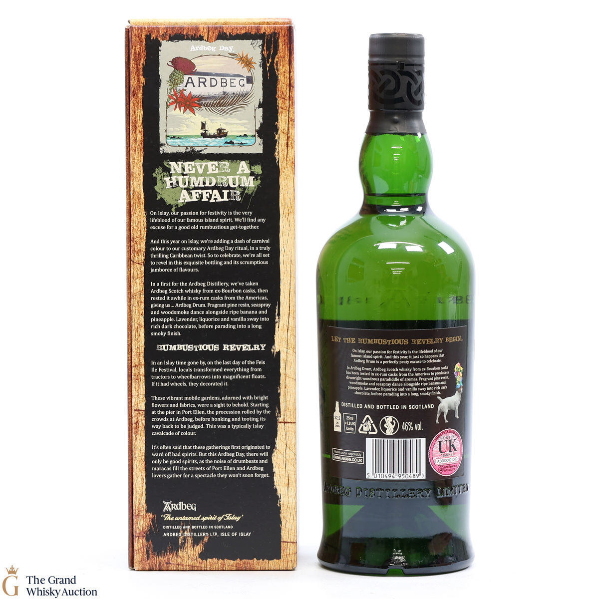 This is the 2019 Ardbeg Drum Limited edition. The Ardbeg Drum is a non-age-statement single malt matured in ex-Bourbon casks and then finished in ex-rum casks from the Americas. It was created to celebrate Ardbeg Day 2019 (June 1) held during the Islay Festival of Music & Malt (Fèis Ìle).