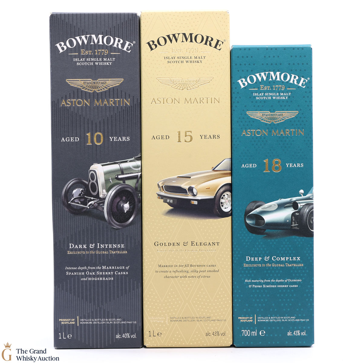 This lot includes 3 x Travel retail exclusive bottles; Edition 4, 5 & 6 from the limited BOWMORE X ASTON MARTIN collection; 2 x 1L bottles and 1 x 70cl.