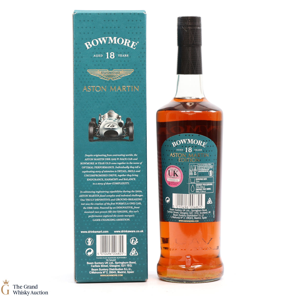Edition 6 from the limited edition Bowmore x Aston Martin series. Performance is the force which unites the Aston Martin DB Mk III and Bowmore 18 Year Old. Together they celebrate exceptional attention to detail, embracing the absolute complexity at the heart of both these beautiful creations. This single malt was matured in some of the finest Oloroso and Pedro Ximénez. 70cl, 43%