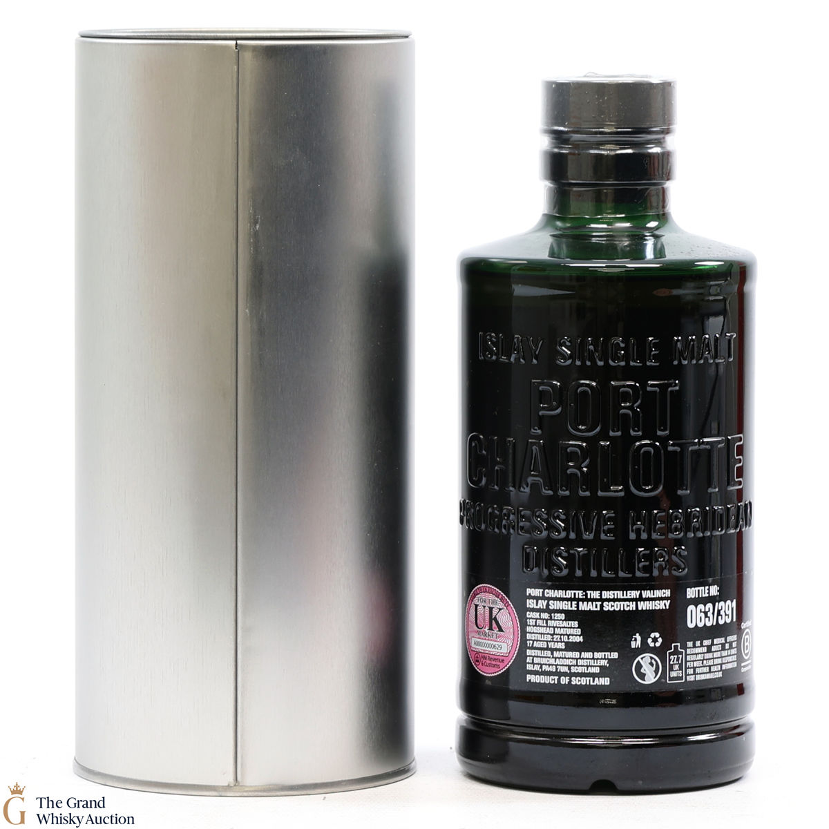 This Port Charlotte Valinch single cask is a single cask distillery-only release. Distilled in Islay in 2004, matured in Rivesaltes Hogshead #1250 for 17 years. This is one of 391 bottles