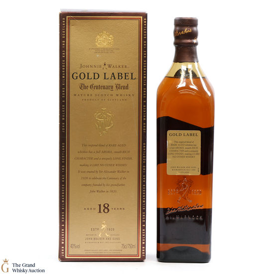This is a blend of over 15 single malts. Originally, Gold Label was bottled at 18 years and labelled 'The Centenary Blend' by Sir Alexander Walker in 1920 to celebrate the centenary of the company founded by his grandfather John Walker in 1820.
