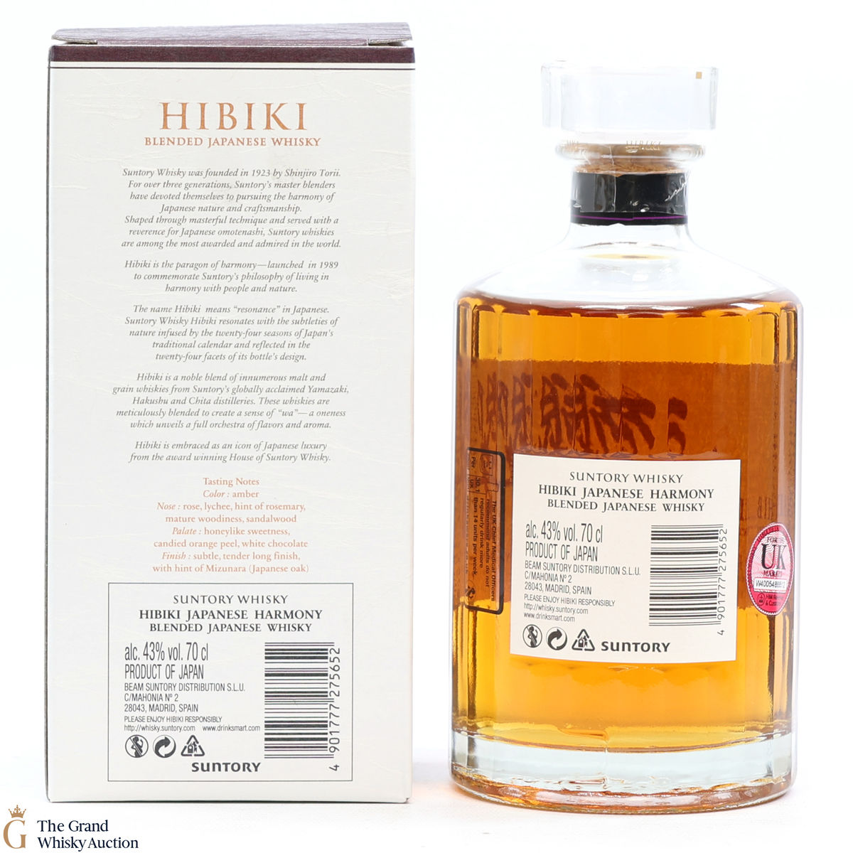 Hibiki Japanese Harmony is made with malt whiskies from the Yamazaki and Hakushu distilleries, as well as grain whisky from the Chita distillery. The whiskies are drawn from 5 different types of cask, including American white oak casks, Sherry casks and Mizunara oak casks. The blend itself was crafted by the Suntory Whisky blending team, led by Master Blender Shingo Torii. An elegant expression, with wafts of honey, orange, a herbaceous touch or two and light oak